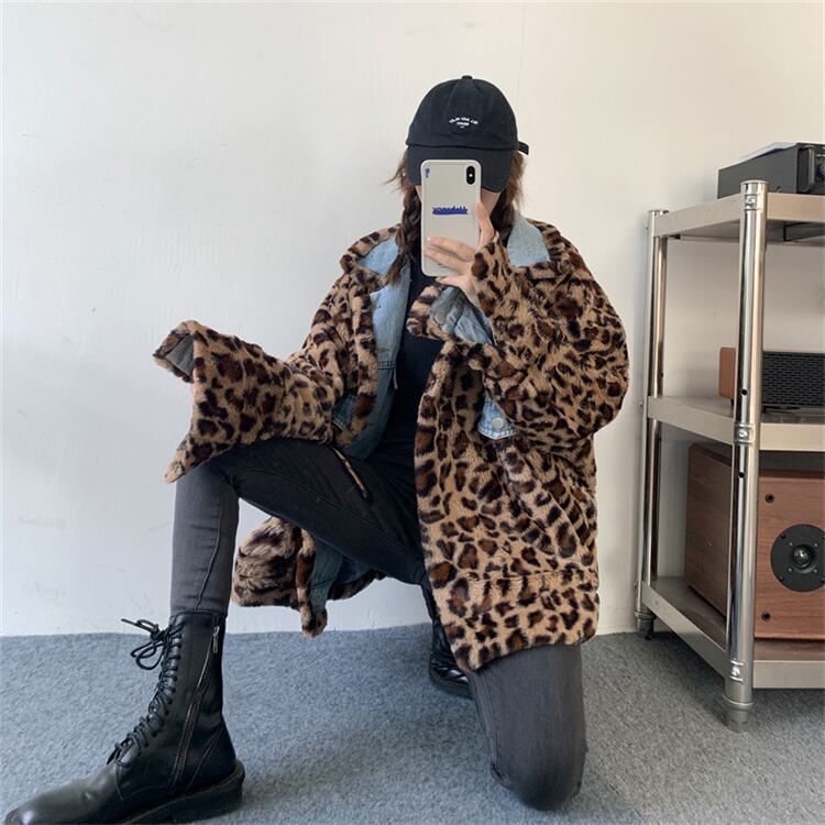韓国ファッション 両面着用可能 3TYPE アウター デニムジャケット ヒョウ